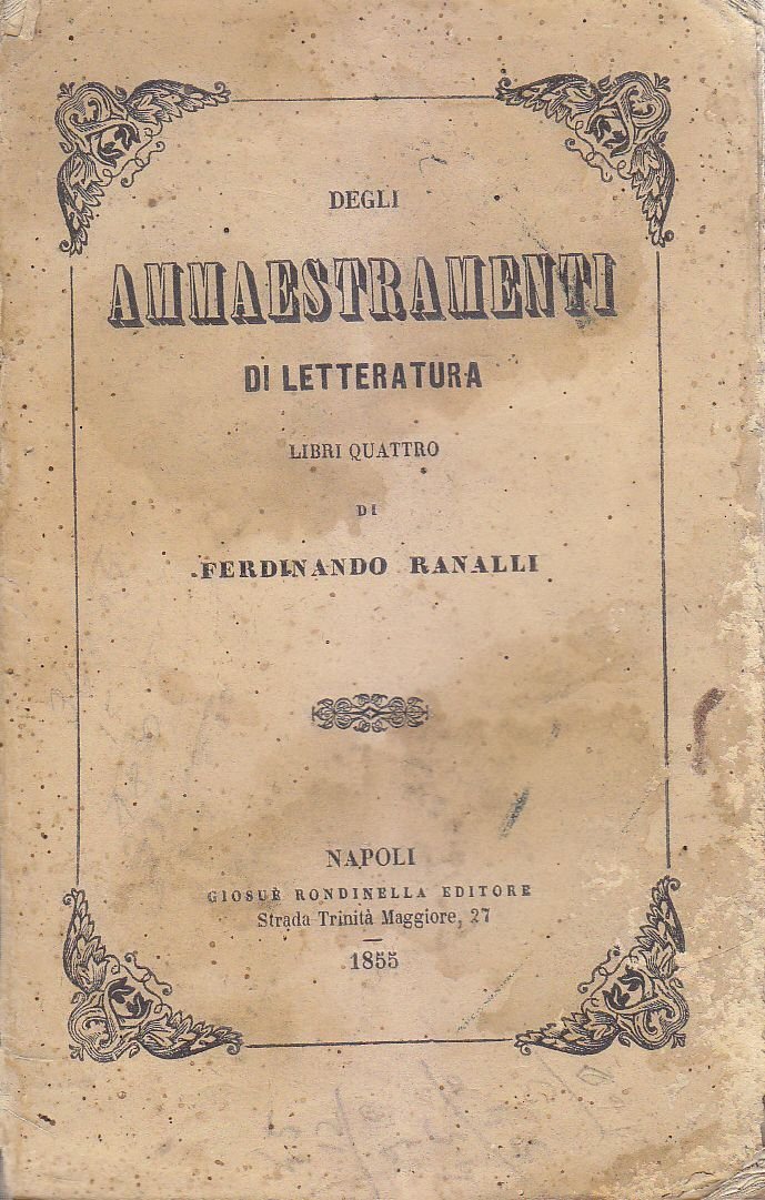 DEGLI AMMAESTRAMENTI DI LETTERATURA LIBRI 4 Ferdinando Ranalli 1855 libro antico