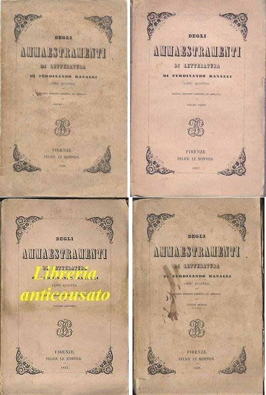DEGLI AMMAESTRAMENTI DI LETTERATURA Ranalli 4 volumi COMPLETO 1857 libro antico