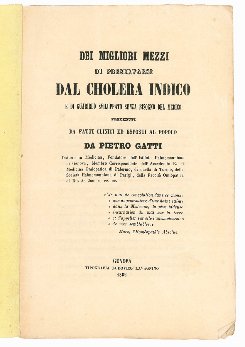 Dei migliori mezzi di preservarsi dal cholera indico e di guarirlo sviluppato senza bisogno del medico preceduti dai fatti clinici ed esposti al popolo.