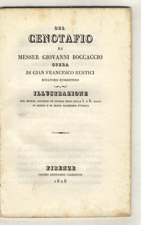 Del cenotafio di messer Giovanni Boccaccio, opera di Gian Francesco Rustici scultore fiorentino. Illustrazione del profes. Giuseppe De Poveda socio della I. e R. Accad. di Arezzo e di altre Accademie d'Italia.