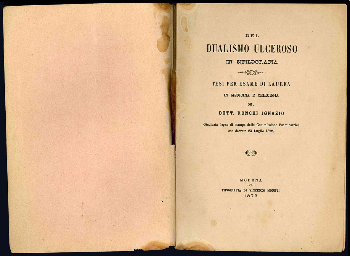 Del dualismo ulceroso in sifilografia. Tesi per esame di laurea in medicina e chirurgia del Dott. Ignazio Ronchi.
