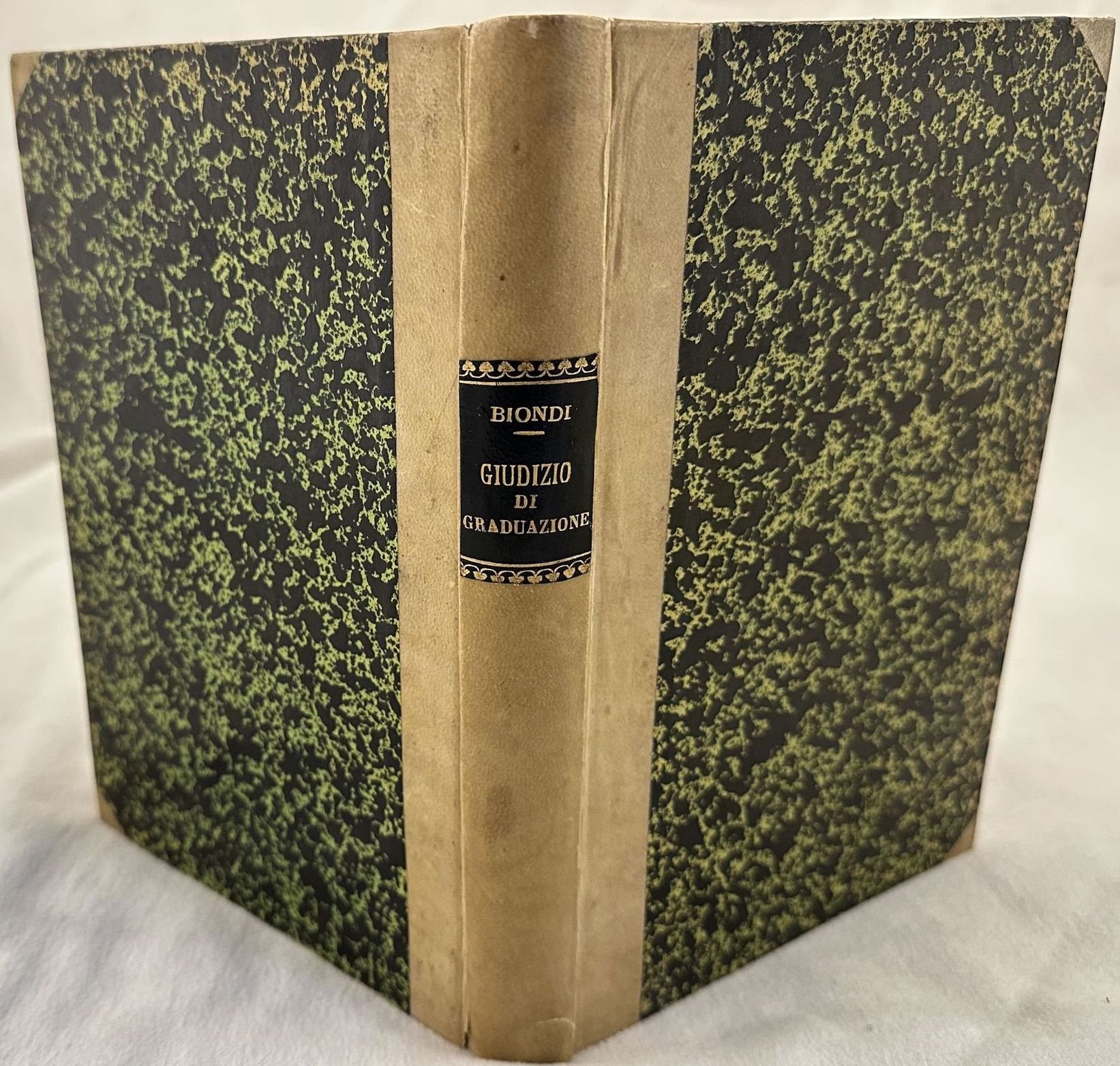 Edizione dei primi del novecento di questa opera dell'Avvocato Leonardo Biondi. Si tratta di una monografia sul giudizio di graduazione nelle sue cause e nel suo svolgimento pratico. Dedica dell'autore con firma al frontespizio. In ottime condizioni. Copertina in mezza pergamena con titolo in oro su tassello al dorso in buone condizioni con lievi usure ai margini e dorso. Legatura in buone condizioni. Pagine in ottime condizioni con rare fioriture. In 8. cm. 23x16. Pp. 283+(1)+XII. Edition of early 20th century of this work by the Lawyer Leonardo Biondi. It is a monography about the judgement of graduation in its causes. Dedication of the author with signature in the al frontespizio. In ottime condizioni. Cloth editorial cover with dustjacket in very good conditions lightly worn in the extremities. Binding in good conditions. Pages in very good conditions with occasional foxing. In 8. cm. 23x16. Pp. 283+(1)+XII.