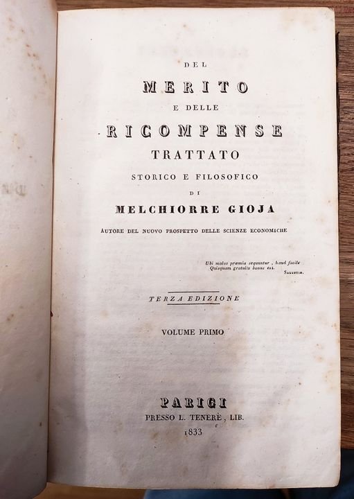 Del merito e delle ricompense : trattato storico e filosofico. 2 Volumi in un tomo | Libri antichi e moderni | Gioia, Melchiorre, ,Gioia, Melchiorre