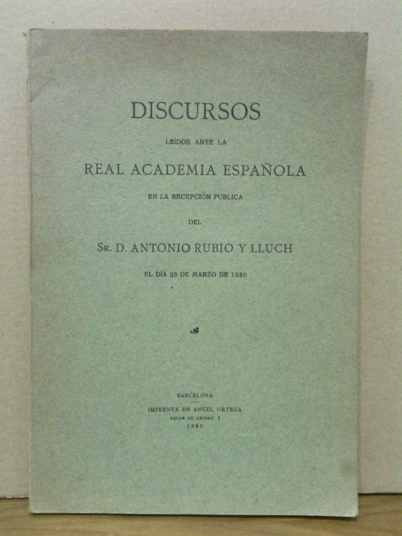 Del nombre y de la unidad literaria de la lengua catalana. (Discurso de ingreso en la R. Academia Española. CONTESTA: D. Francisco Rodríguez Marín)