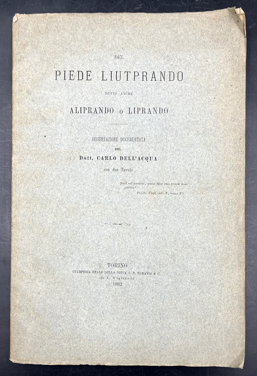 Del PIEDE LIUTPRANDO detto anche Aliprando o Liprando : dissertazione documentata del dott. Carlo Dell'Acqua. [Unità di misura longobarda, PAVIA].