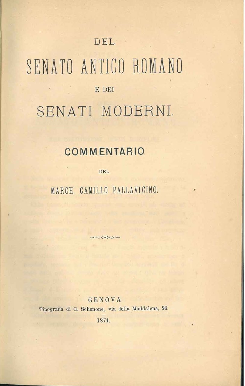 Del Senato antico romano e dei senati moderni