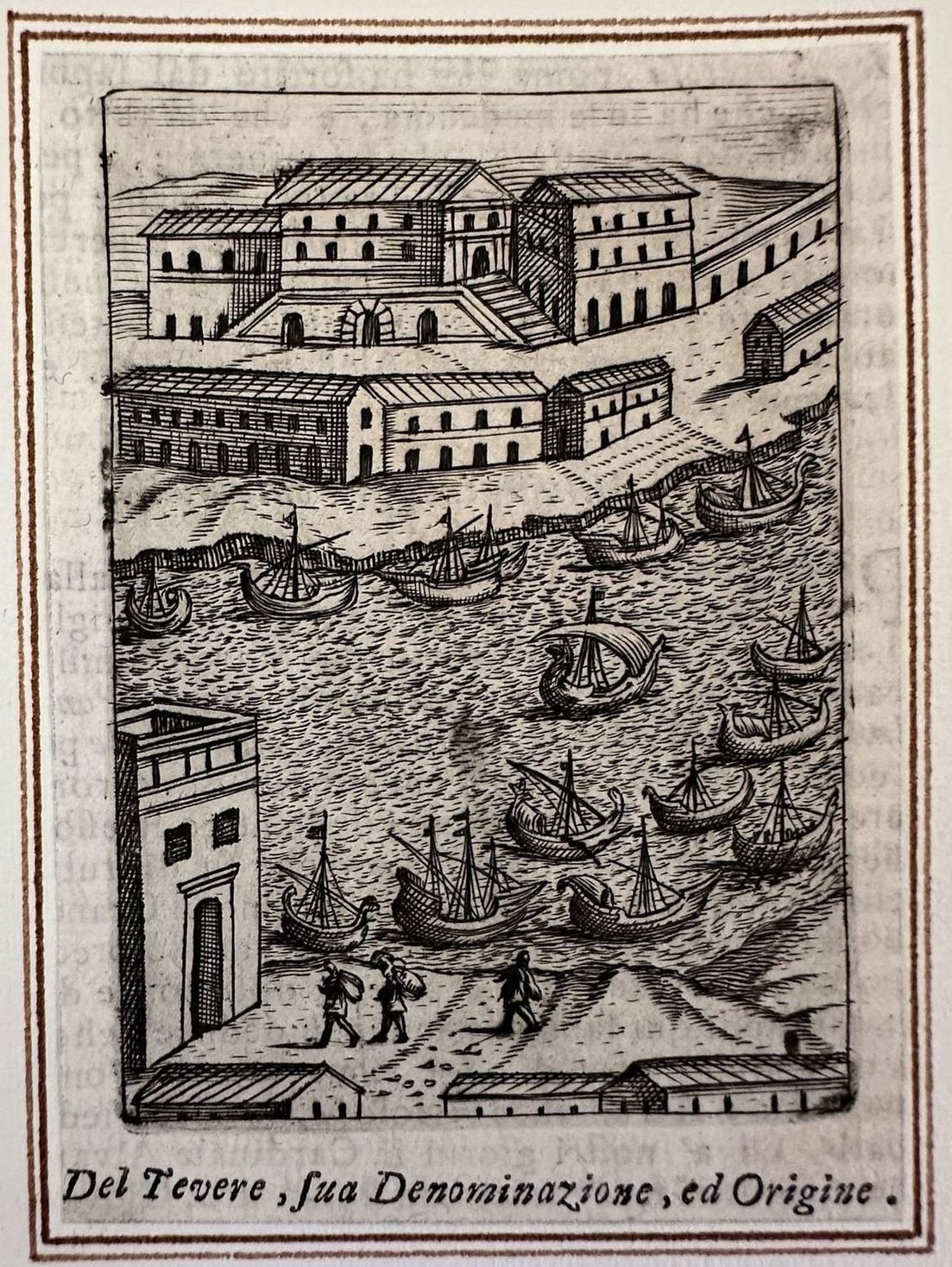 Veduta animata del Tevere a Roma applicata su un cartoncino. Atlante: Descrizione di Roma Antica Autore: Onofrio Panvinio, Famiano Nardini, Alessandro Donati Data: XVII secolo Tecnica: incisione su rame Dimensione del foglio: 250x175 mm Dimensione incisione: 115x82 cm Condizioni: Buone. Rare fioriture. Animated view of Tevere in Rome applied in a carton base. Atlas: Descrizione di Roma Antica Autore: Onofrio Panvinio, Famiano Nardini, Alessandro Donati Date: 17th century Technique: Copper etching Leaf Dimension: 250x175 mm Engraving Dimension: 115x82 cm Conditions: Good conditions. Occasional foxing. <BR><BR>