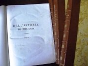 - Complessivamente illustrata da 25 magnifiche tavole fuori testo, (per lo piu' di ritratti, oltre una carta geografica del Ducato ed una pianta topografica, di Milano ripiegata), 35 figure di medaglie, monete e monumenti antichi: il tutto finemente inciso in rame e, accuratamente spiegato da Giovanni Labus alle pagine 399-470, dell'ultimo volume. Dedica al conte Giacomo Mellerio. Prima, edizione di questa poderosa opera che offre il quadro della, storia milanese dai primordi della citta' sino alla meta' del, secolo XII, cioe' sino alla incoronazione di Federico I. A tale epoca, comincia il corso della storia che termina al 1535?. La, continuazione della storia fino al 1740, scritta dall'autore stesso, e' rimasta inedita. Il quarto volume e' interamente dedicato, alla raccolta dei "documenti inediti".