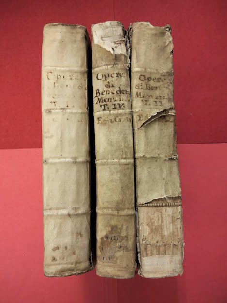 3 voll., in 8°, p. perg. 2° vol. - Varie poesie Toscane, cc.nn. 3 + pp. 349. 3° vol. - Le prose volgari, pp. VIII + 362. 4° vol. - Complectens quae tum soluta oratione tum versibus latine scripta sunt, pp. VIII + pp. 195. UNITO: PAOLUCCI GIUSEPPE, da Spello. La vita di Benedetto Menzini. Notabilmente accresciuta con un dialogo in fine del Sig. Giuseppe Bianchini di Prato nel quale si dispone sopra un giudizio dato da Pier Jacopo Martelli intorno al Poetare del Menzini, e D'Alessandro Guidi, pp. 104. Capilettera su piccole ma pregevoli inc. Testate. Carta forte. Finaline. Gore. Mende alle copp. L'Opera è mancante del 1° vol.