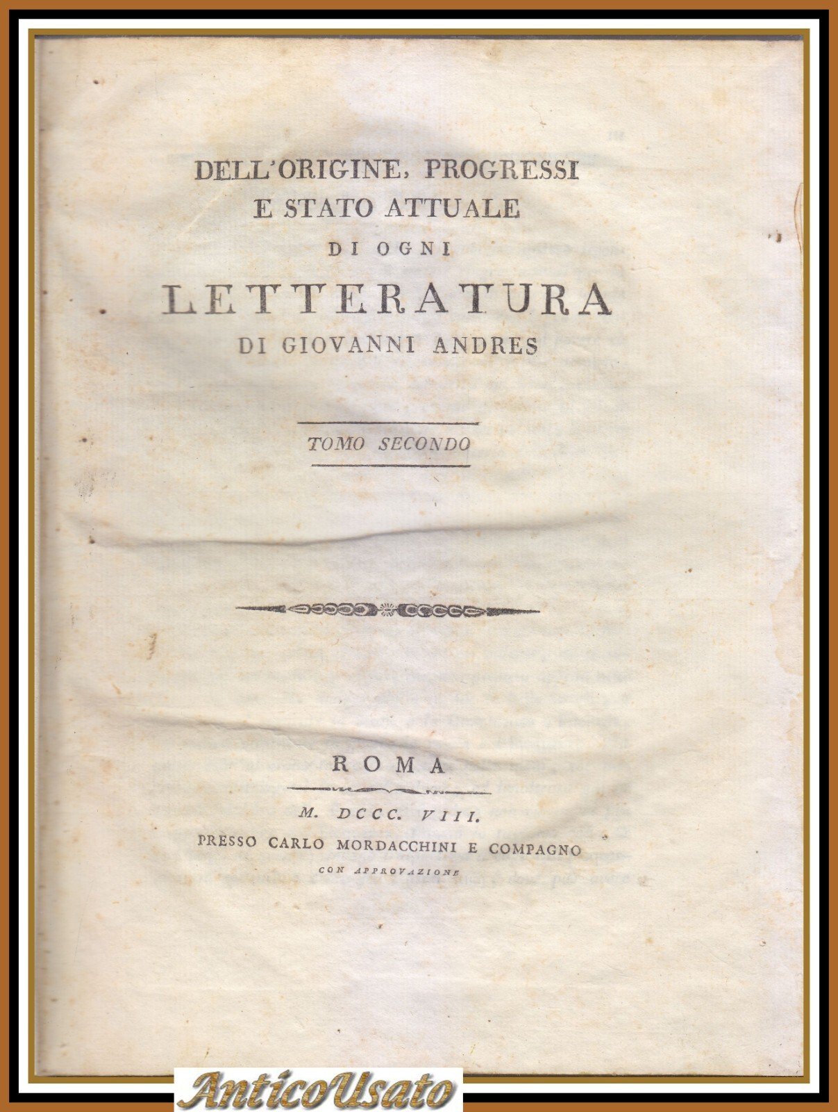 DELL'ORIGINE PROGRESSI E STATO ATTUALE DI OGNI LETTERATURA Andres 1808 6 libri