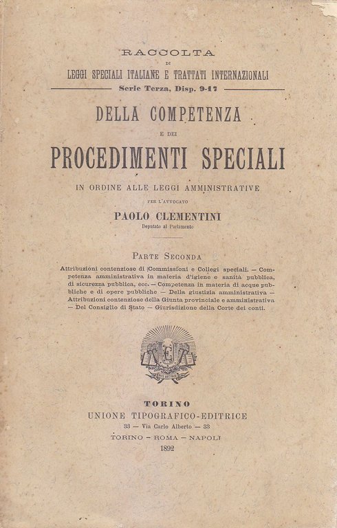 DELLA COMPETENZA E DEI PROCEDIMENTI SPECIALI Parte 2 di P Clementini 1892 Libro