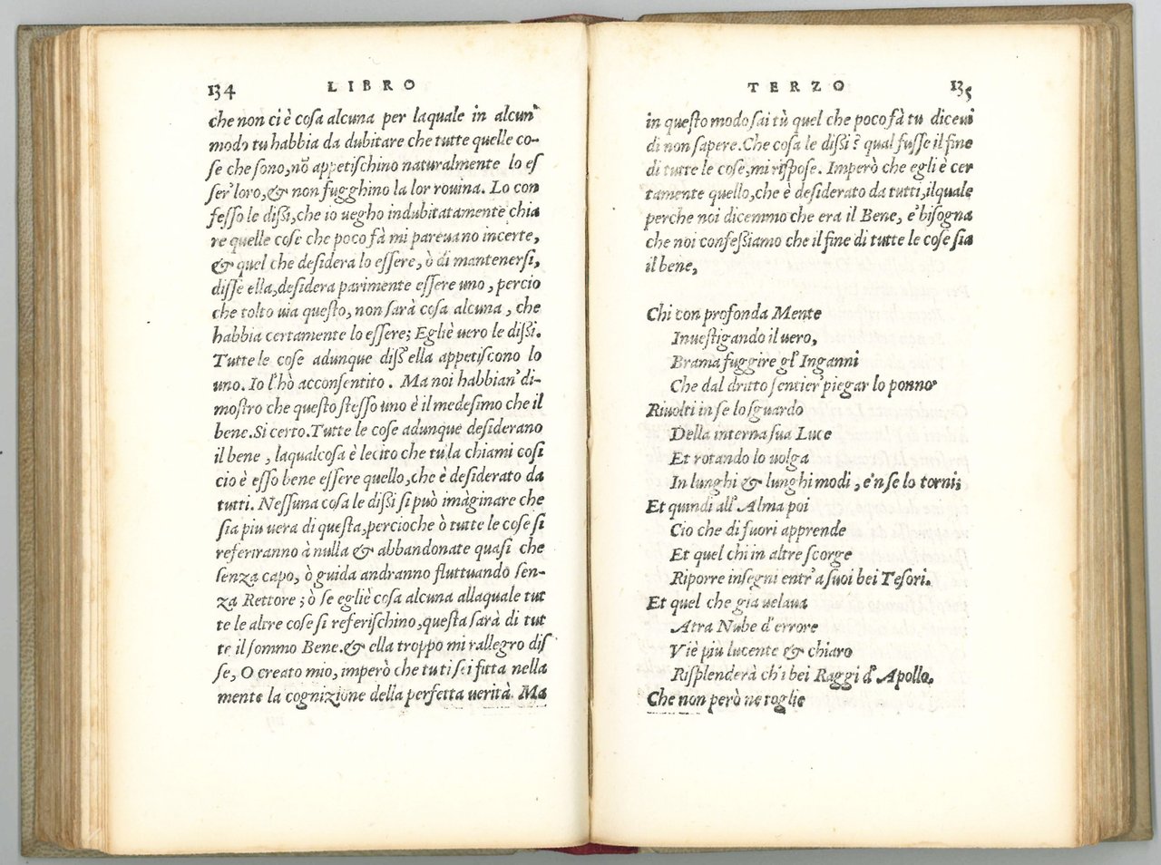 First edition of the De consolatione Philosophiae in the Italian translation by Cosimo Bartoli. In the late 1540s, Emperor Charles V, in anticipation of his retirement from public life, requested to the Duke of Florence Cosimo I a new Italian version of Boethius' work. The duke entrusted the task to three leading Florentine academics: Ludovico Domenichi, BenedettoVarchi, and Bartoli. All three translations were published by Torrentino between 1550 and 1551. It was Varchi's that met with the greatest success as he better managed to maintain the alternation between verse and prose of the original text.