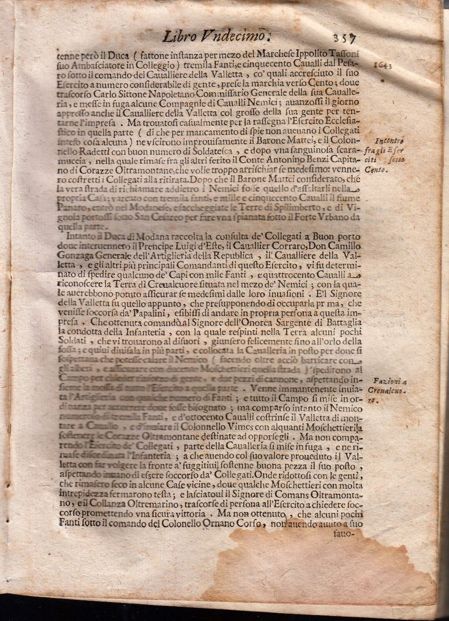 DELLA HISTORIA D'ITALIA dall'anno 1625 fino al 1676 di Girolamo Brusoni Libro