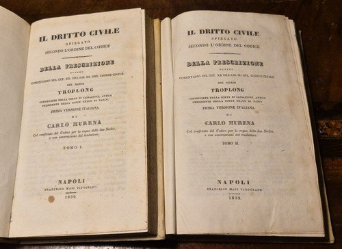 IL DIRITTO CIVILE SPIEGATO SECONDO L'ORDINE DEL CODICE. DELLA PRESCRIZIONE ovvero commentario sul titolo XX del libro III del codice civile del signor Troplong. Prima versione italiana di Carlo Murena.