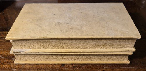 XX, 439 + 378, XXVI pagine. Copertine coeve in tutta pergamena con titoli dorati entro tasselli colorati al dorso e tagli picchiettati. Dimensioni: 13,5 x 22 cm. Stato di conservazione: molto buono (fioriture, piccole imperfezioni alla copertina)