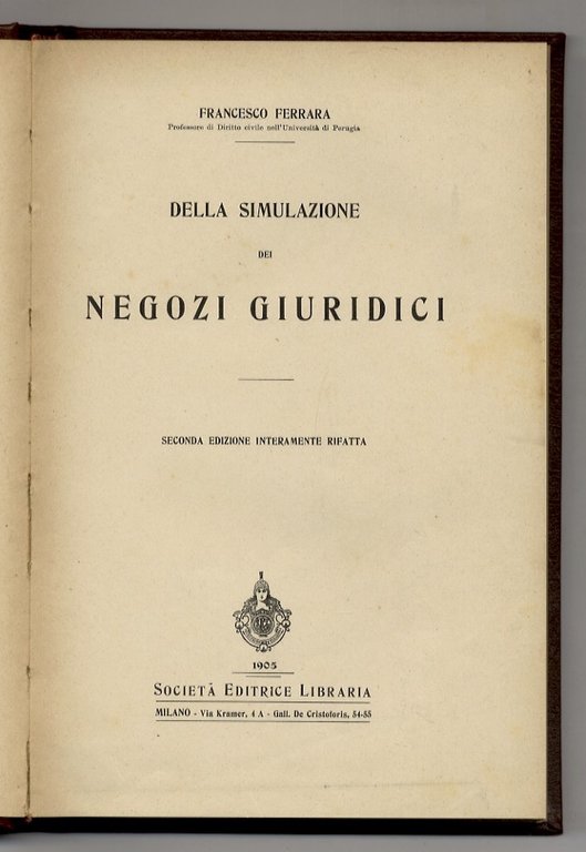 Della simulazione dei negozi giuridici. Seconda edizione interamente rifatta.