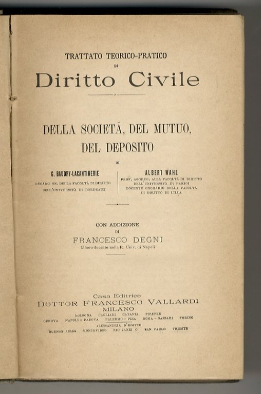 Della società, del mutuo, del deposito. Con addizione di Francesco Degni.