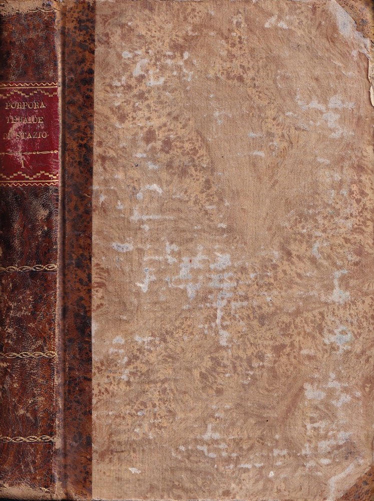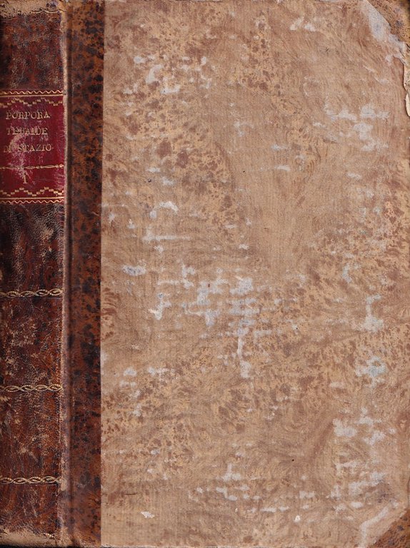 Opera incompleta: in oggetto il volume I. Legatura usurata agli angoli, ai margini e al dorso, sia alle estremità che sulla lunghezza. Dorso in similpelle con titoli e fregi dorati solo su di esso. Piccola nota a matita alla controguardia superiore. Controguardie con lieve fioritura. Pagine ben salde alla cerniera, con ampio margine, bruniti i tagli. Presente fioritura sparsa tra le pagine e ai tagli. Numero pagine 252.