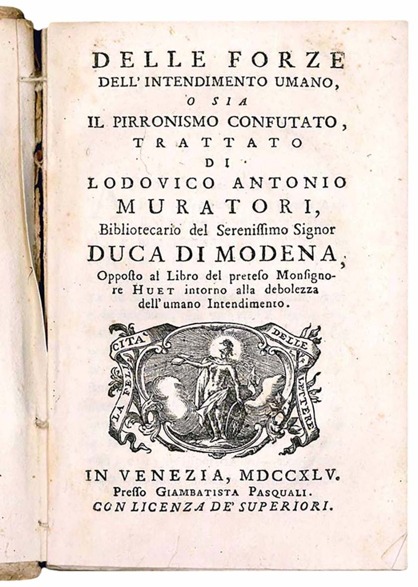 Delle forze dell'intendimento umano, o sia il Pirronismo confutato, trattato di Ludovico Antonio Muratori, Bibliotecario del Serenissimo Signor Duca di Modena, Opposto al Libro del preteso monsignore Huet intorno alla debolezza dell'umano Intendimento.