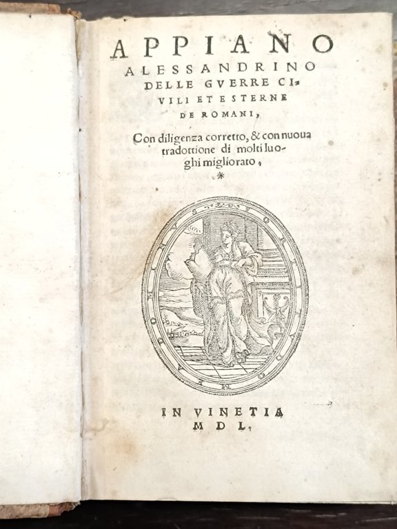 2 volumi in 1 in-8° (cm. 15), legatura di primo Ottocento in mezza pelle con tassello successivo al dorso (lievi segni d'usura); cc. [4] 9-285 [i.e.283] [1 b], [1] 190 in buono stato, con vignetta a entrambi i frontespizi e alcune glosse ai margini; sporadiche fioriture e rari leggerissimi aloni; uno strappo ricomposto alla carta b8; cadute le sole due ultime carte bianche. Volgarizzamento dell'umanista Alessandro Braccesi. Buon esemplare. (NR6)