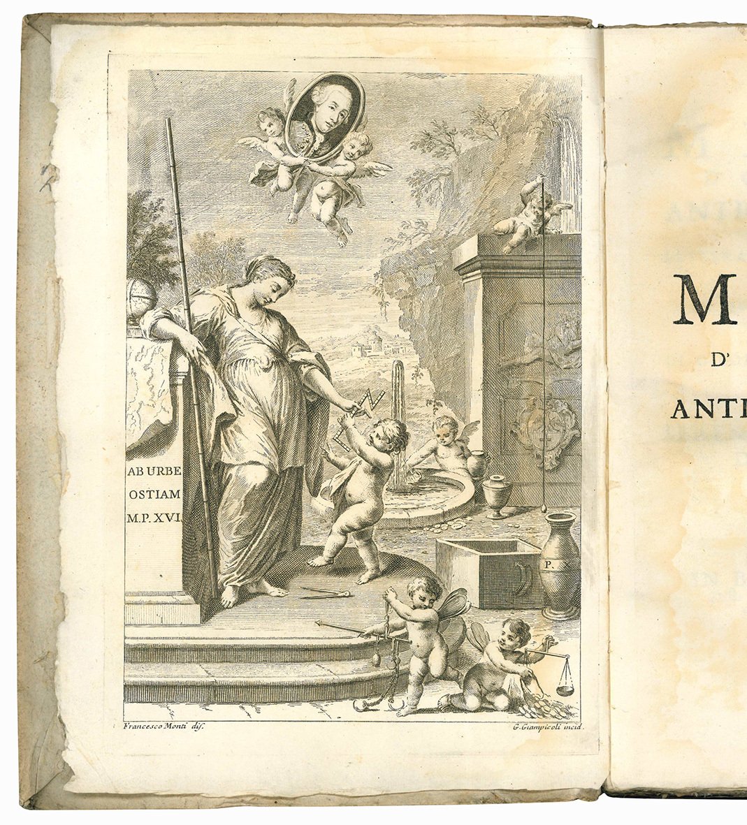 In 4to (mm 282x207); pp. XXIV, 208, [2] c. di tav. calcografiche ripiegate fuori testo. Bella antiporta allegorica incisa in rame da G. Giampicoli su disegno di Francesco Monti, occhietto, marca editoriale calcografica incisa da Cagnoni al frontespizio. Tre graziose iniziali istoriate incise in rame. Lievissime fioriture e leggeri aloni. Cartonato coevo con nervi passanti e titolo manoscritto al margine superiore del dorso. Mancanze al dorso. Bell'esemplare in barbe e in parte ancora a fogli chiusi.