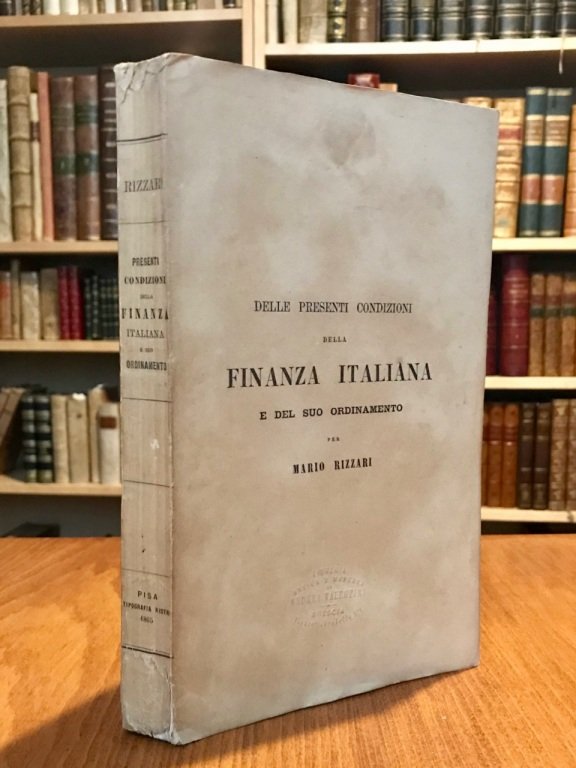 In-8° (cm. 23,2), brossura editoriale a stampa (Ex libris impresso a secco di libraio bresciano del XIX secolo); pp. [2] 405 [3b] in ottimo stato, solo qualche lieve fioritura. Edizione originale di uno dei primi studi dell'economista pisano, ordinario dell'Università di Catania, nonché sindaco di quella città e senatore. Esemplare molto buono. (SE4)