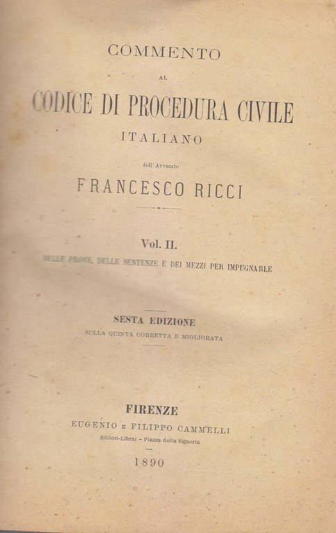 Delle Prove Sentenze E Mezzi Impugnabili di Francesco Ricci 1890 diritto libro