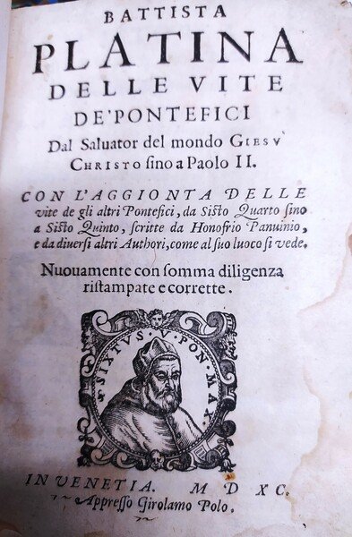 Delle vite de' Pontefici dal Salvator del Mondo Giesù Christo fino a Paolo II. Con l'aggionta delle vite de gli altri Pontefici, da Sisto Quarto fino a Sisto Quinto, scritte da Honofrio Panvinio, e da diversi altri Authori, come al suo luoco si vede