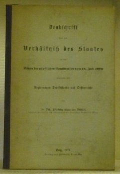 Denkschrift über das Verhältniss des Staates zu den Sätzen der päpstlichen Constitution vom 18. Juli 1870 gewidmet den Regierungen Deutschlands und Oesterreich. | Libri antichi e moderni | Ritter Von Schulte, Joh. Friedrich.