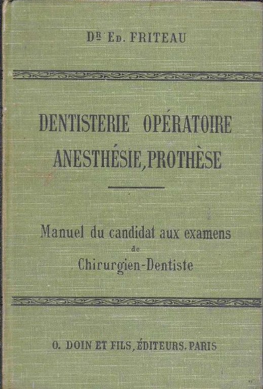 Dentisterie nopératoire, anesthesie, prothèse. Manuel du candidat aux exames de chirurgien -dentiste.