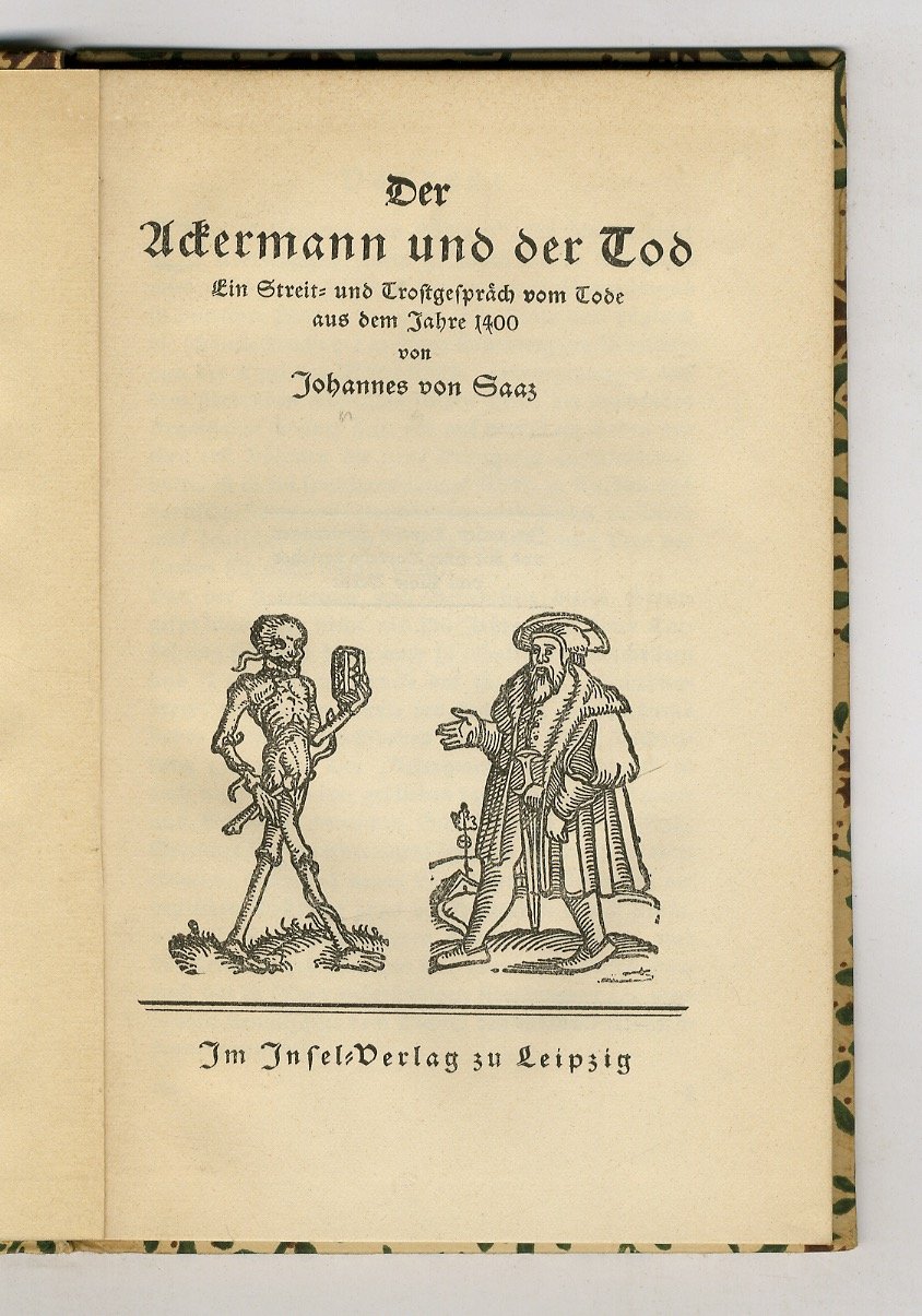 Der Ackermann und der Tod. Ein Streit-und Trostgespräch vom Tode aus dem Jahre 1400.(Im unser Deutsch übertragen und mit einem Vorrede versehen von Alois Bernt).