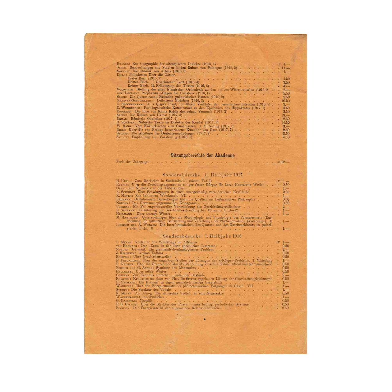 - Berlin: Verlag der Königlichen Akademie der Wissenschaften (in, commission at Georg Reimer [Reichsdruckerei]), 30th May 1918.