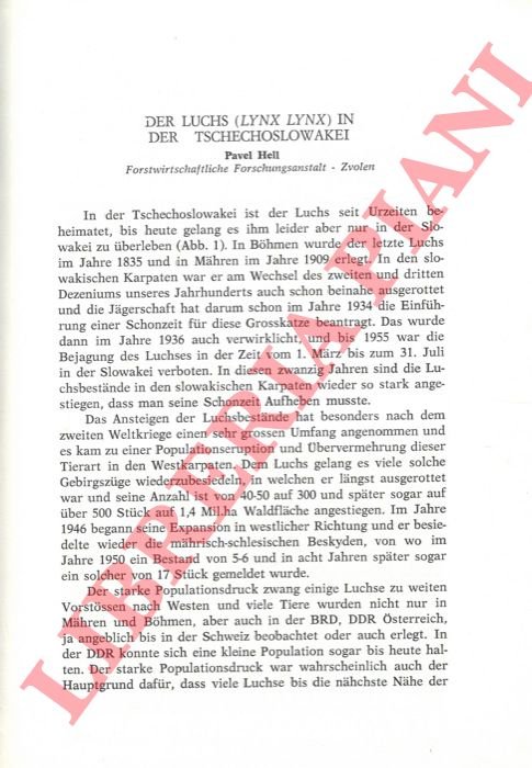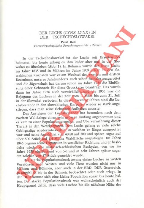 Der Luchs (Lynx lynx) in der Tschechoslowakei.