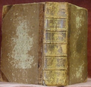 205x165mm, 743 Seiten, 13 feuilles. Relié demi veau à coins, dos à nerfs, étiquette de titre, tranches marbrées, cuir frotté, coins usés, reliure de l’époque fatiguée, mais encore solide.