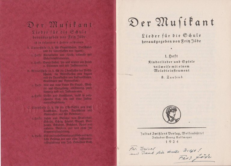 Der Musikant. Lieder für die Schule. (Widmug!).