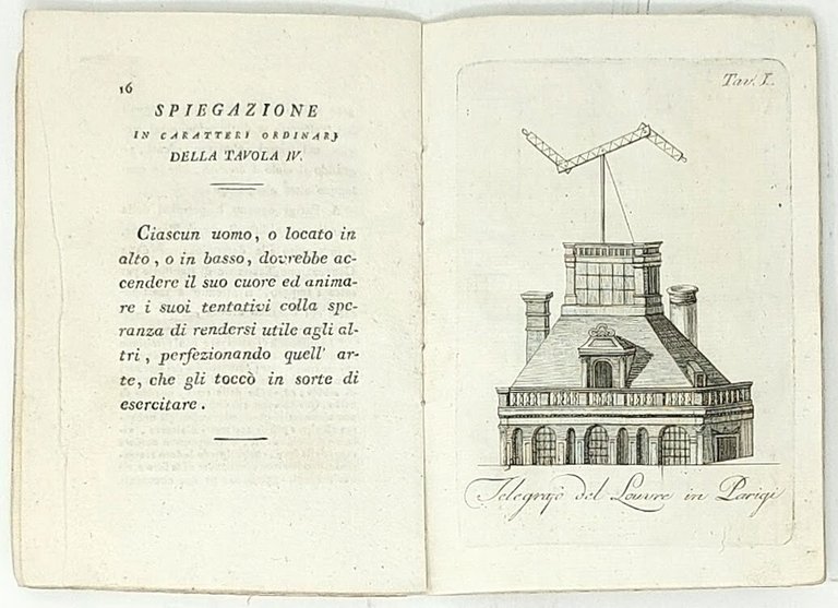DESCRIZIONE del TELEGRAFO con rami. Preceduta da una introduzione istorica sui segnali militari, accompagnata da altre interessanti notizie, e dalla spiegazione in caratteri ordinarj di una tavola ideale scritta in caratteri telegrafici.