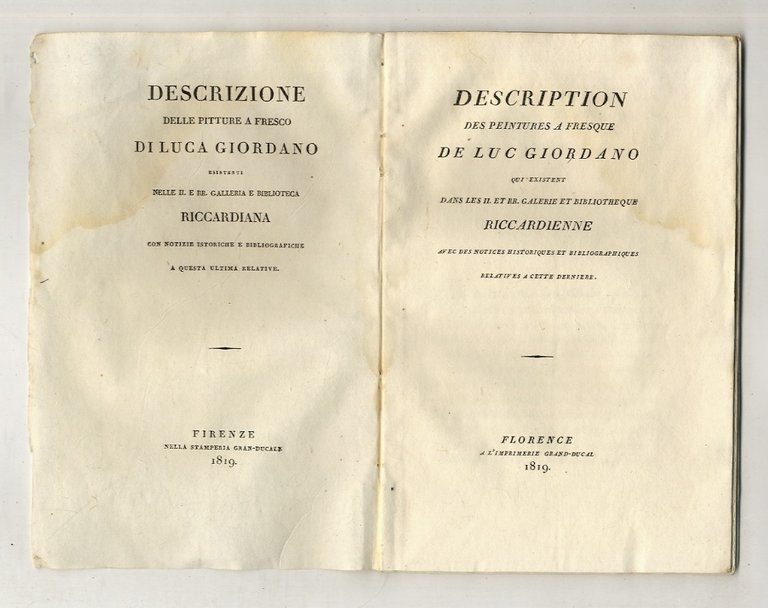 Descrizione delle pitture a fresco di Luca Giordano esistenti nelle II. e RR. Galleria e Biblioteca Riccardiana con notizie istoriche e bibliografiche a questa ultima relative.