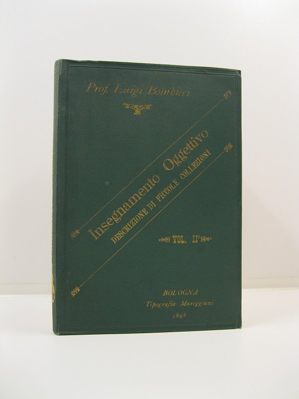 In 8, pp. 214 con 30 tavv. f.t. su carta azzurra. Legatura editoriale in piena tela verde. Ottimo esemplare. Secondo volume contenente la descrizione dell'armadio con i prodotti vegetali realizzato da Bombicci a fini didattici, insieme agli altri due armadi con il mondo animale e quello minerale. Gli armadi erano costituiti da 90 cassetti, ognuno contenente una materia oggetto di studio da parte degli allievi. Il metodo pedagogico oggettivo, di ascendenza positivista, mirava infatti a rendere concrete le materie di studio. Gli armadi vennero presentati all'Esposizione emiliana del 1888 ancora oggi sono visibili presso il Museo Bombicci di Bologna.