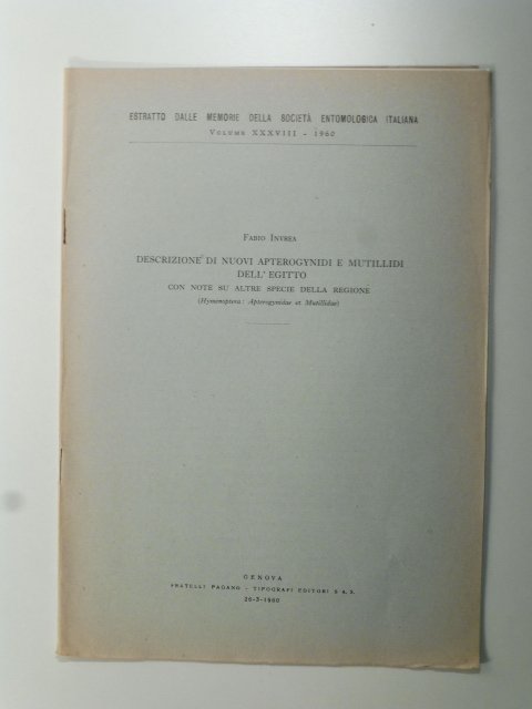 Descrizione di nuovi apterogynidi e mutillidi dell'Egitto con note su altre specie della regione (Hymenoptera. Apterogynidae et mutillidae)