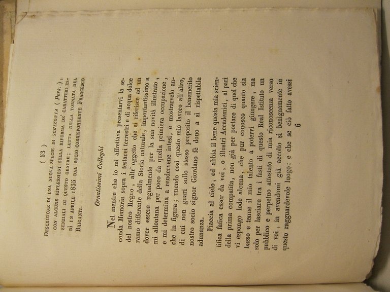 Descrizione di una nuova specie di schizonia (Pers.) con alcune riflessioni sulla riforma de' caratteri essenziali di questo genere letta nella tornata del di' 12 aprile 1835.