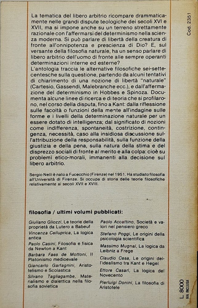sergio nelli determinismo e libero arbitrio da cartesio a kant. , loescher 1982 italiano, °°