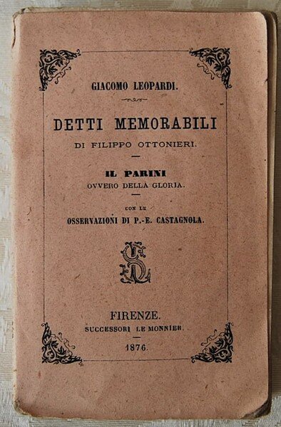 DETTI MEMORABILI DI FILIPPO OTTONIERI. IL PARINI, OVVERO DELLA GLORIA. CON LE OSSERVAZIONI DI P.E. CASTAGNOLA.