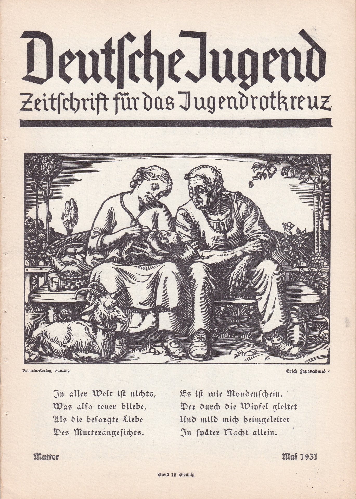 Diese Ausgabe steht unter dem Motto "Mutter". Aus dem Inhalt: 1 Deckelill. n. E. Feyerabend, weitere Abb. nach Zeichnungen, Gemälden, Scherenschnitten u. sw Photographien v. M. Liebermann, H. Thoma, H. Daumier, Pieter de Hoog, Käthe Kollwitz, O. Herbig u.a., Geschichten v. E. v. Wildenbruch u. Felix Salten, Gedichte v. Rückert, Liliencron, Morgenstern u. G. Keller, etwas über Goethes Mutter, eine Anleitung zum Bau eies Geschenk-Kästchens u.a.m. Als lose Beilage "Mitteilungen d. dt. Jugendrotkreuzes" .