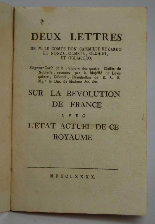 Deux lettres de M. Le Comte Don Cammille de Cardo et Nonza, Olmeta. Olchini, et Ogliastro… sur la revolution de France avec l'état actuel de ce Royame.