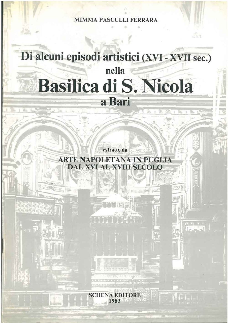 Di alcuni episodi artistici (XVI-XVII sec.) nella Basilica di S. Nicola a Bari Estratto da "Arte napoletana in Puglia dal XVI al XVIII secolo"