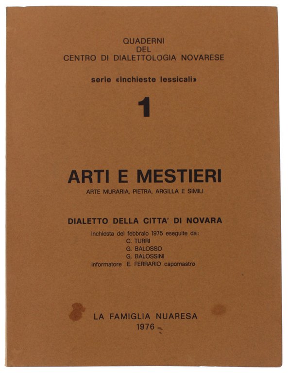DIALETTO DELLA CITTA' DI NOVARA: Arte Muraria, Pietra, Argilla e simili. Quaderni Centro Dialettologia Novarese 1