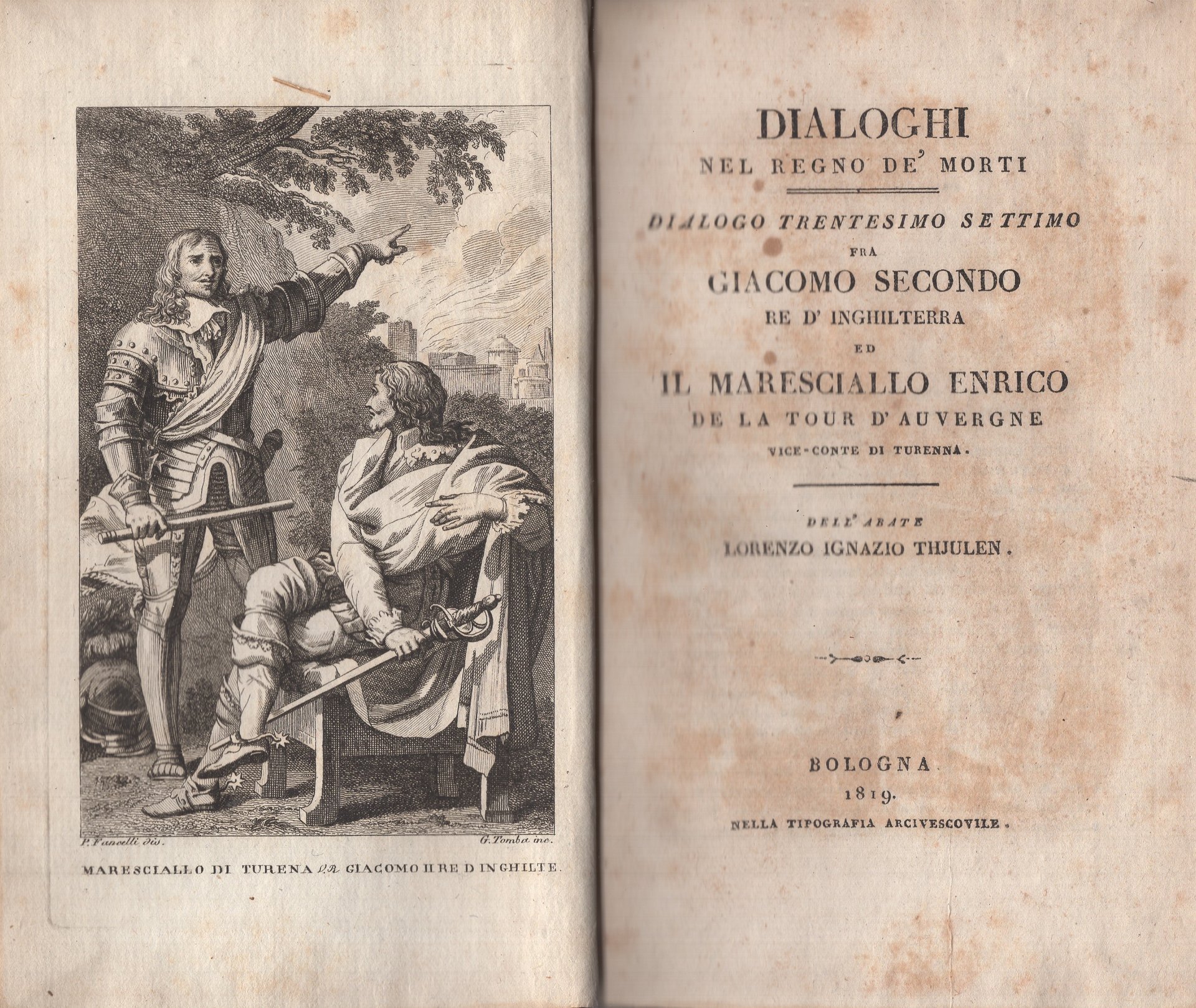 Comprende i dialoghi da 37 a 42. Mancanza al dorso, una decina di pagine macchiate. Sei Incisioni all'inizio di ciascun dialogo irappresentano i personaggi coinvolti