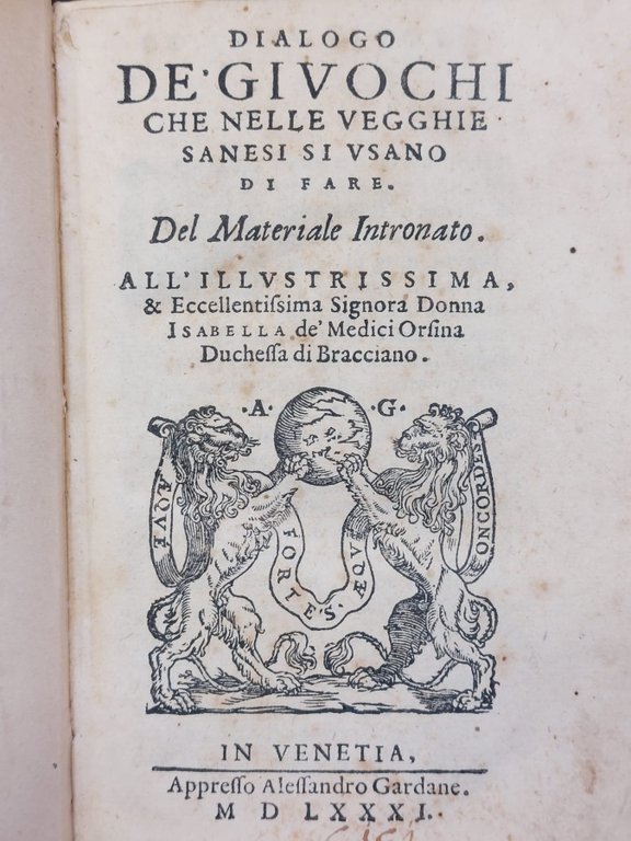 Dialogo de' giuochi che nelle vegghie sanesi si usano di fare. Del Materiale Intronato.