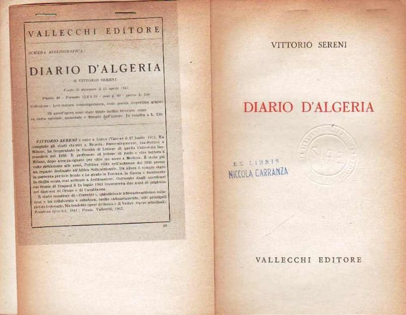 In-16°, legatura editoriale in brossura, pp. 48(2). Macchioline al piatto anteriore, e leggera brunitura ai margini delle pagine. All'occhiello, sopra il titolo, data e firma d'appartenenza manoscritte; al verso è spillata la scheda editoriale; al frontespizio timbretto ex-libris dello stesso proprietario. Edizione originale della terza raccolta del Poeta.