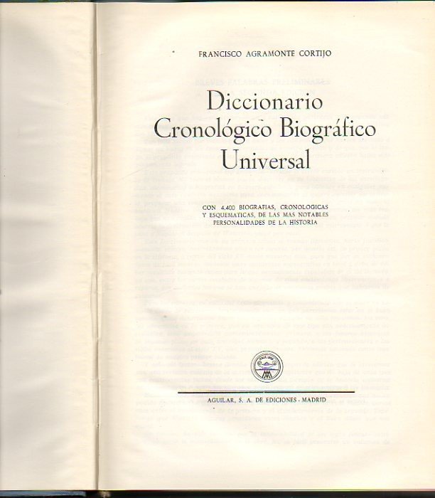 DICCIONARIO CRONOLOGICO BIOGRAFICO UNIVERSAL. CON 400 BIOGRAFIAS, CRONOLOGICAS Y ESQUEMATICAS, DE LAS MAS NOTABLES PERSONALIDADES DE LA HISTORIA.
